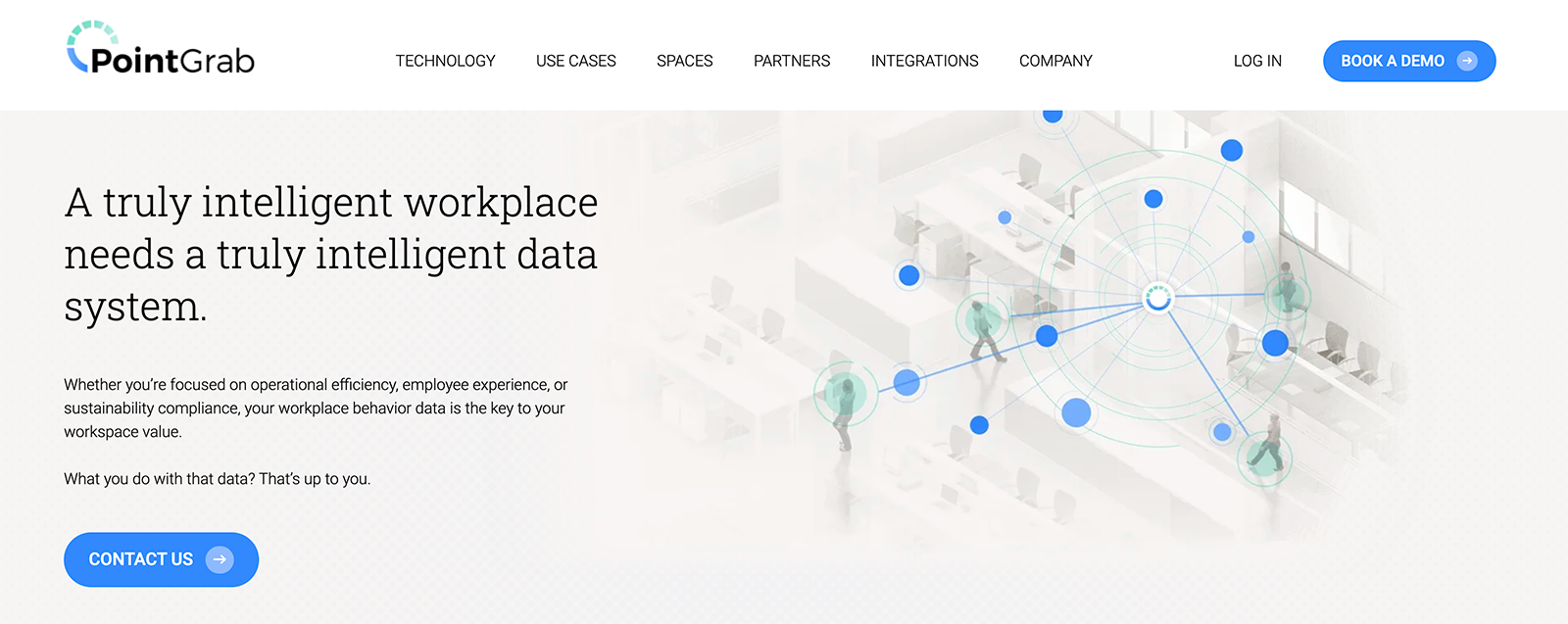 PointGrab is a workplace intelligence platform that uses a series of wired and wireless sensors to generate occupancy insights. Its technology combines optical and PIR sensors, typically deployed in selective areas rather than full portfolios. PointGrab also offers a cloud management platform for configuring sensors, defining detection areas, and exporting data.