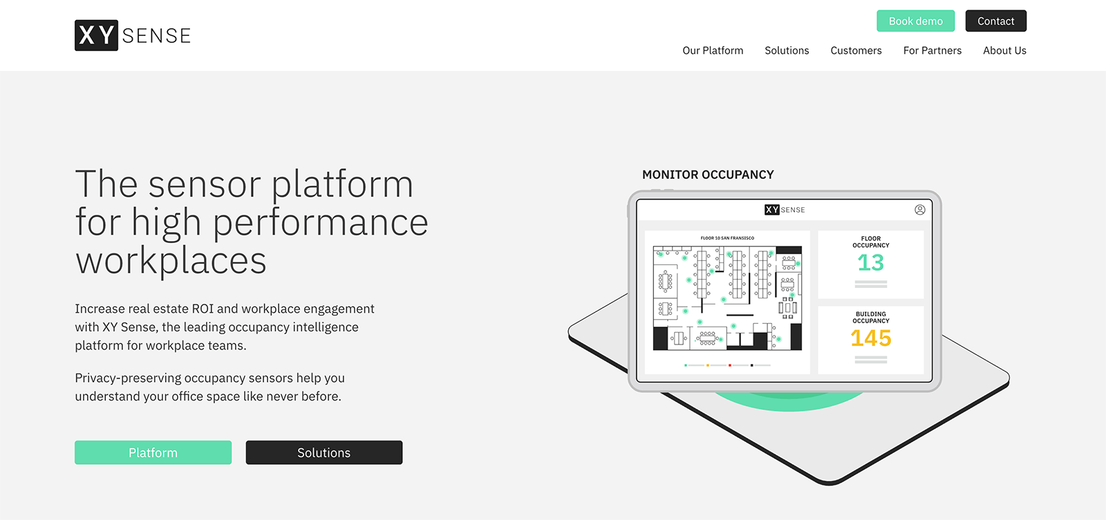 XY Sense is a workplace analytics platform that uses ceiling-mounted sensors to capture occupancy and utilization data. The sensors track the XY coordinates of individuals relative to the sensor, without capturing images or personal information. Data feeds into XY Sense's analytics platform for reporting on utilization trends, hybrid planning, and portfolio optimization.