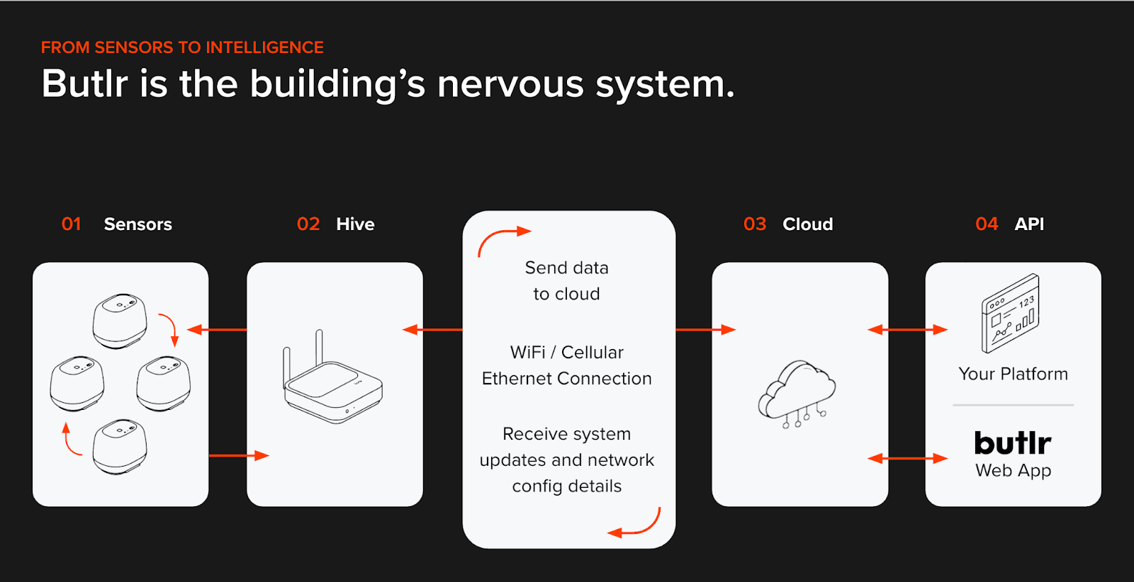 - Rather than centralizing data inside a proprietary dashboard, Butlr's API-first model sends occupancy signals outward into your existing platforms. If your facilities team already tracks work orders in an IWMS, your energy team manages HVAC schedules in a BMS, and your leadership reviews metrics in Tableau, the sensor data reaches each of those tools without requiring anyone to log into a new system